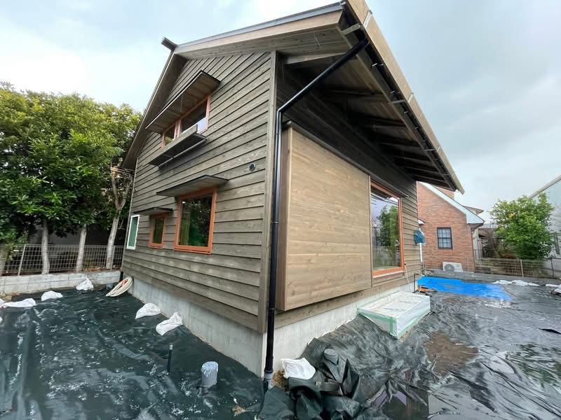 これから屋外キッチン、外構、ウッドデッキ、造園工事へと進んでいきます。